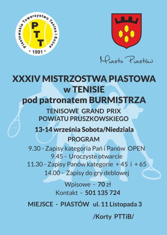 W dniach 27-28 września na kortach Piastowskiego Towarzystwa Tenisa i Bocce rozegrano kolejny turniej z cyklu Grand Prix Powiatu Pruszkowskiego w Tenisie.